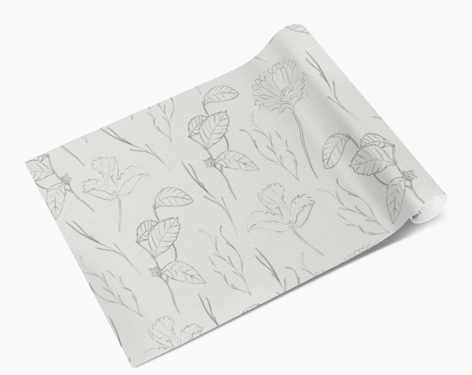 Grey Floral Leaf Outlines Vinyl Furniture Wrap