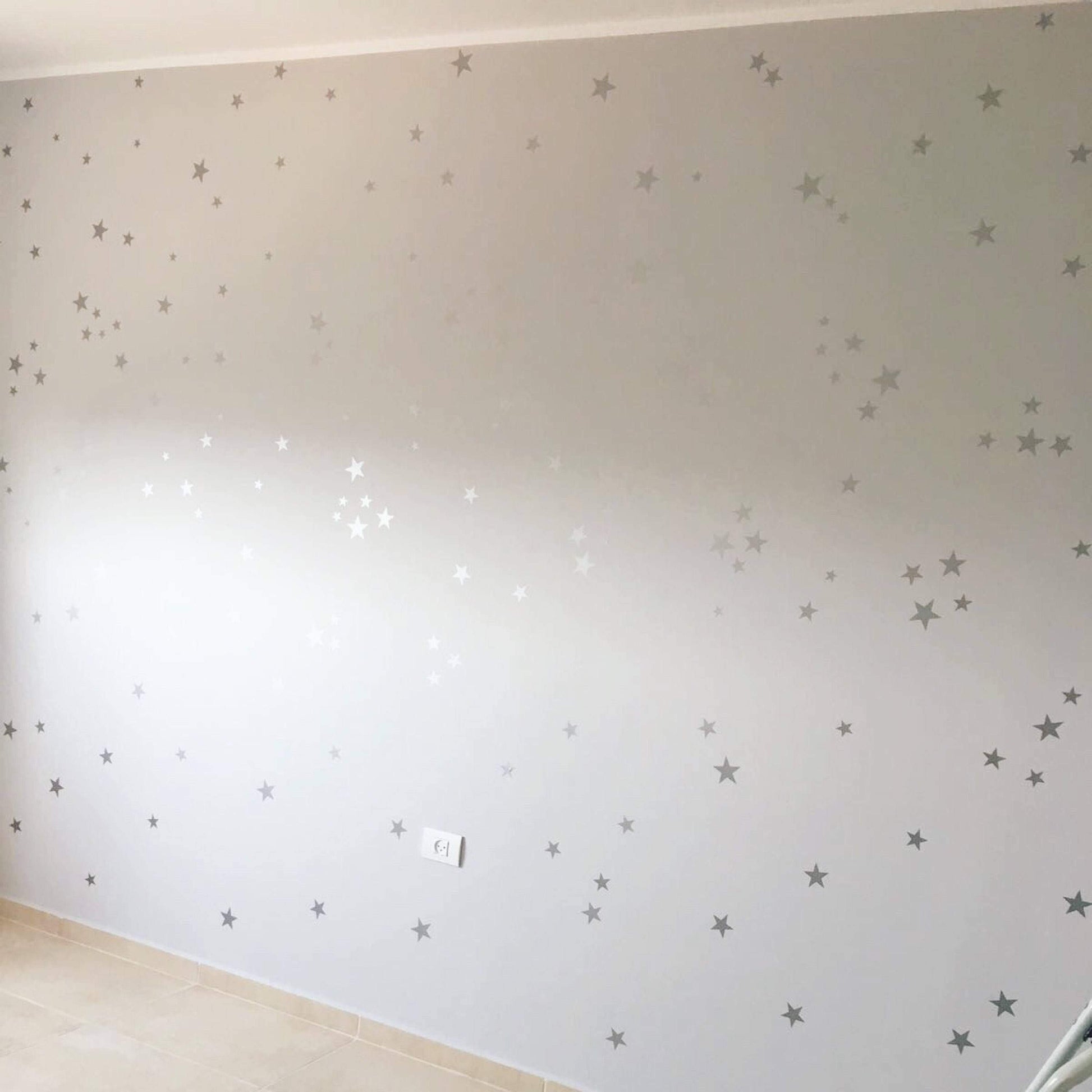 *NEW* Now 120 stars instead of 100! Pack of 120 metallic silver star wall decal stickers. Our metalic silver stars are simple to apply, just peel and stick! Use your imagination with these, they can be very effective. Look absolutely stunning in a nursery or a children's bedroom. Can also be used in your home, office, on your car, as envelope sealers, or as glass warning stickers!