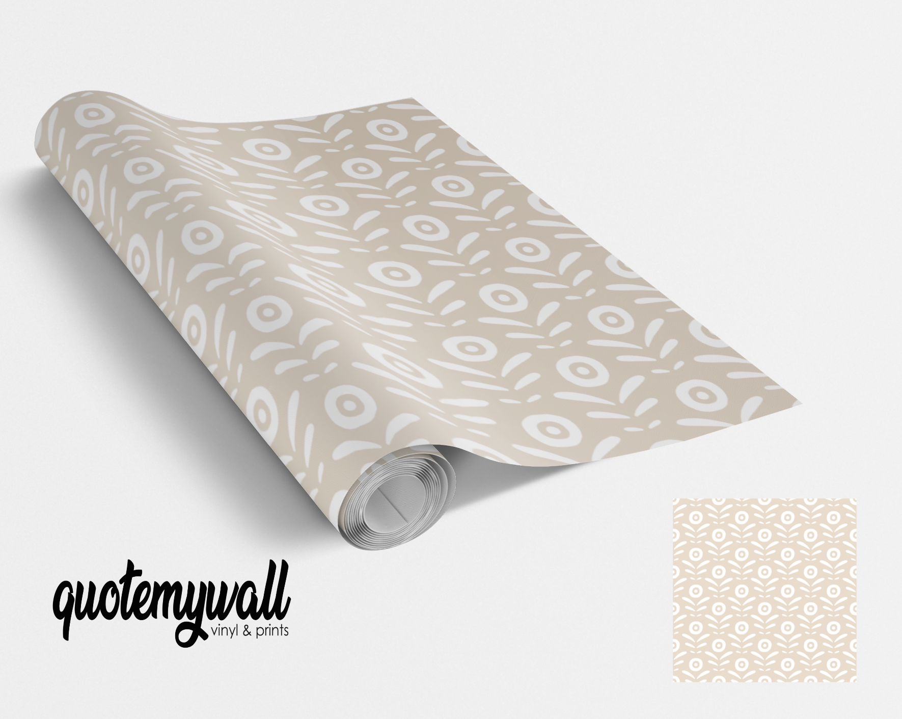 Stone Beige White Plant Shoots Self Adhesive Vinyl